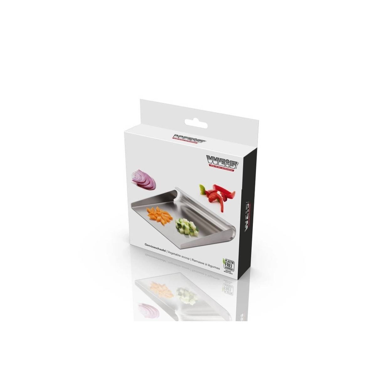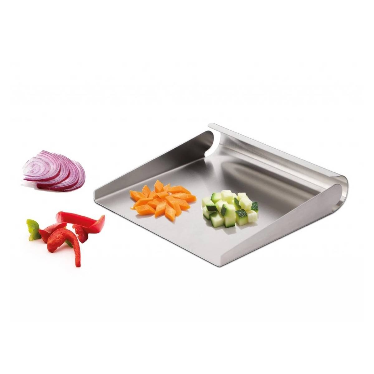 - Perfektní nástroj pro rychlý a lehký sběr všech krájených surovin, jako je zelenina či maso, z pracovní desky nebo prkénka.