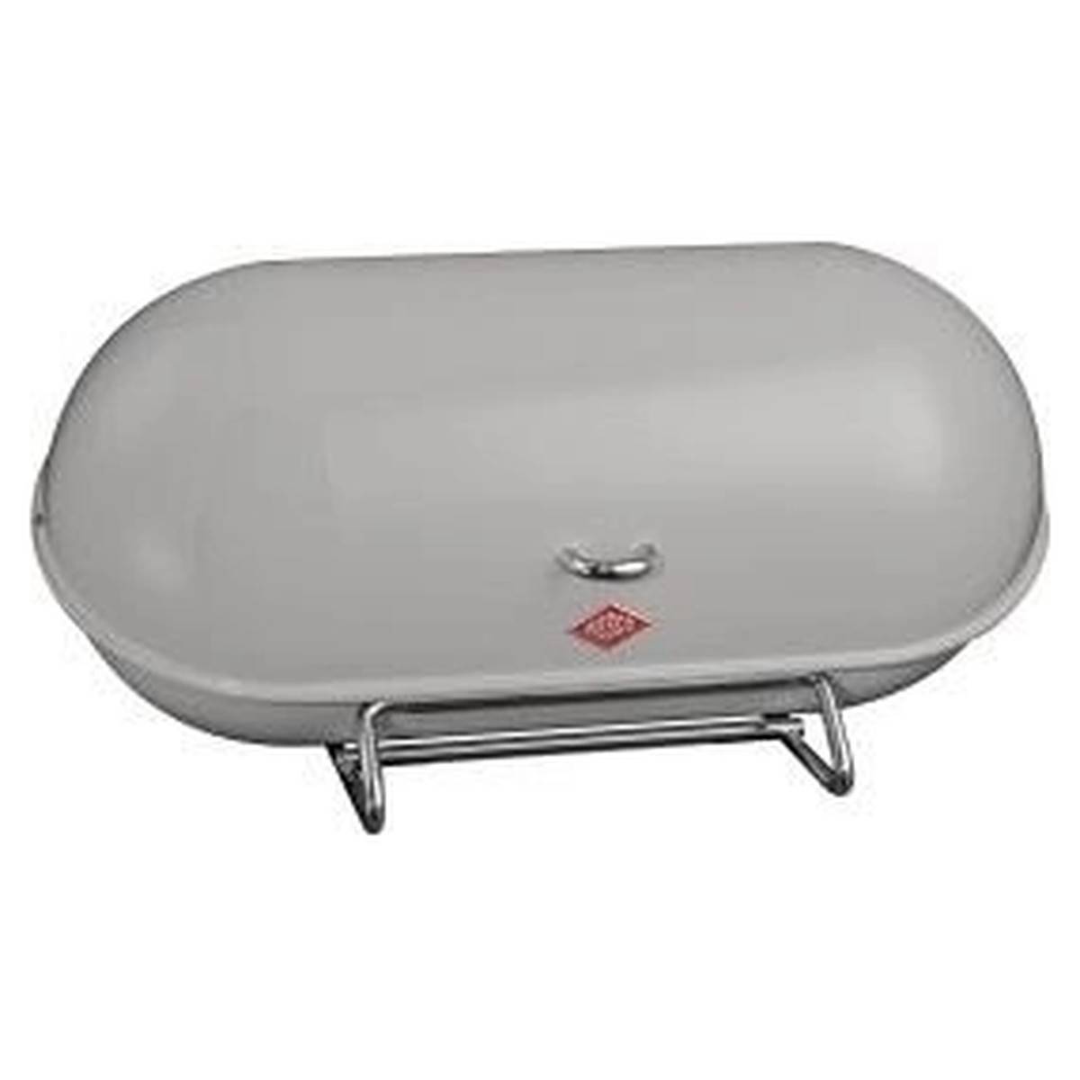 Retro chlebník z lakovaného nerezu.