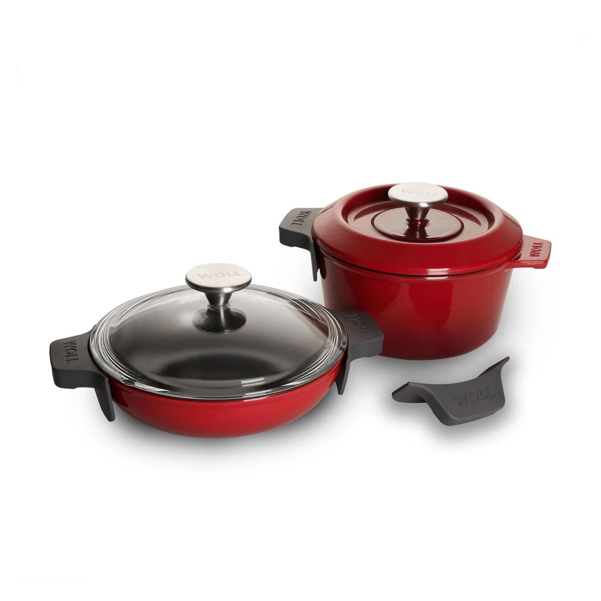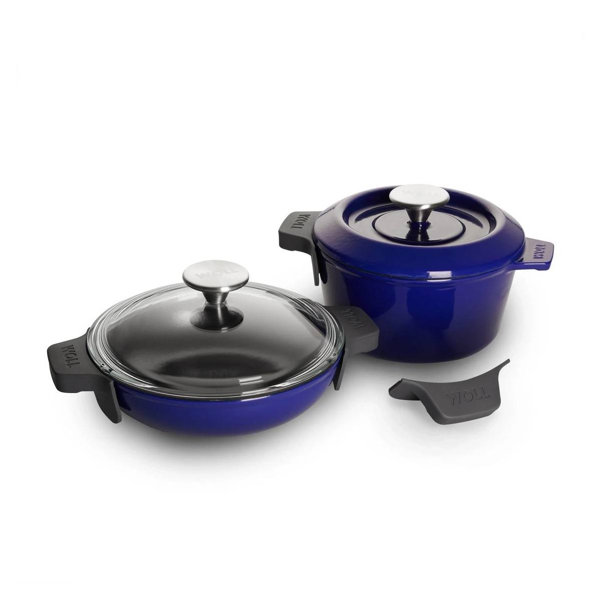- Sada WOLL Iron německé značky obsahuje smaltovaný litinový hrnec (2,8 l) a litinovou servírovací pánev.