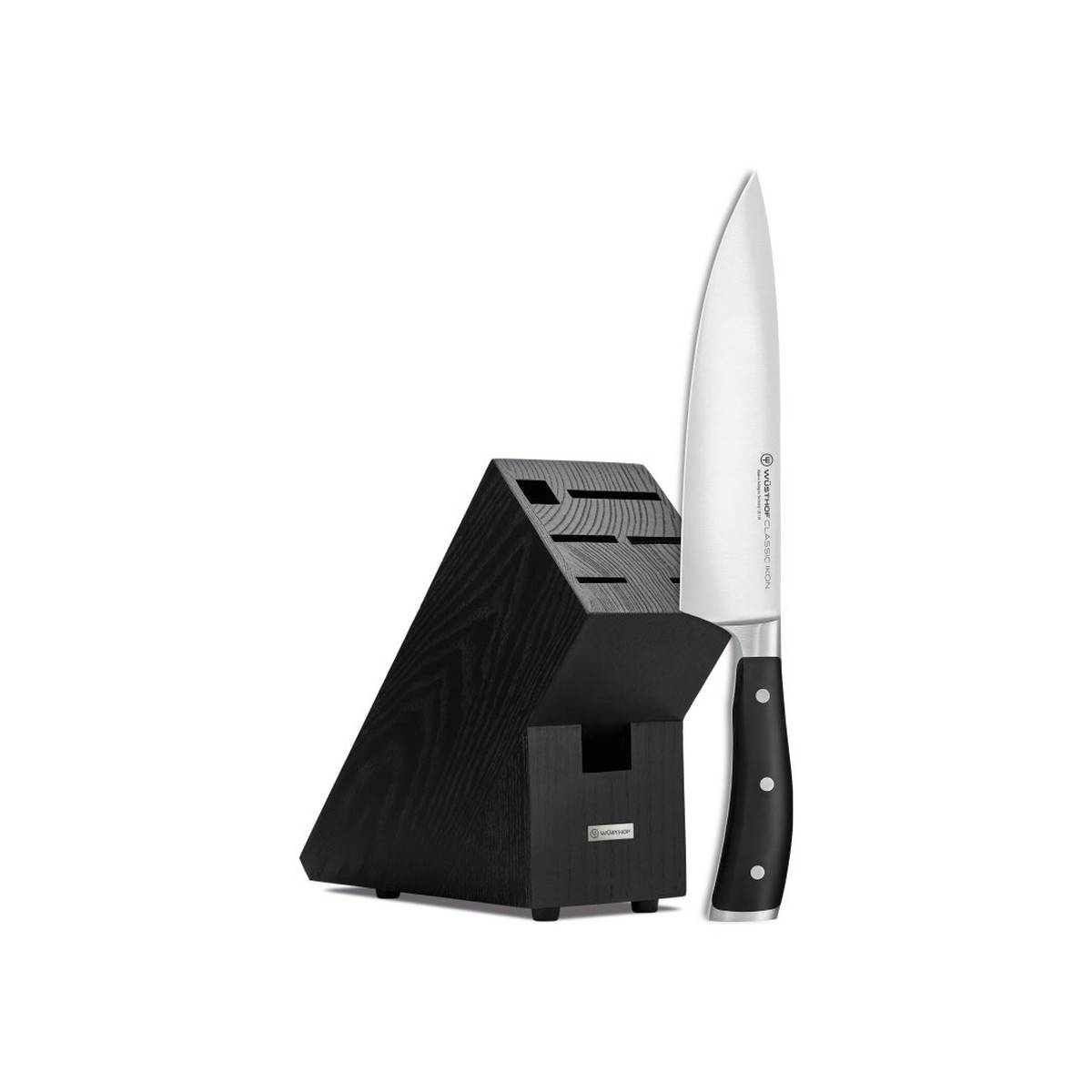 - Blok je vyroben z výběrového bukového dřeva a pojme až pět nožů.