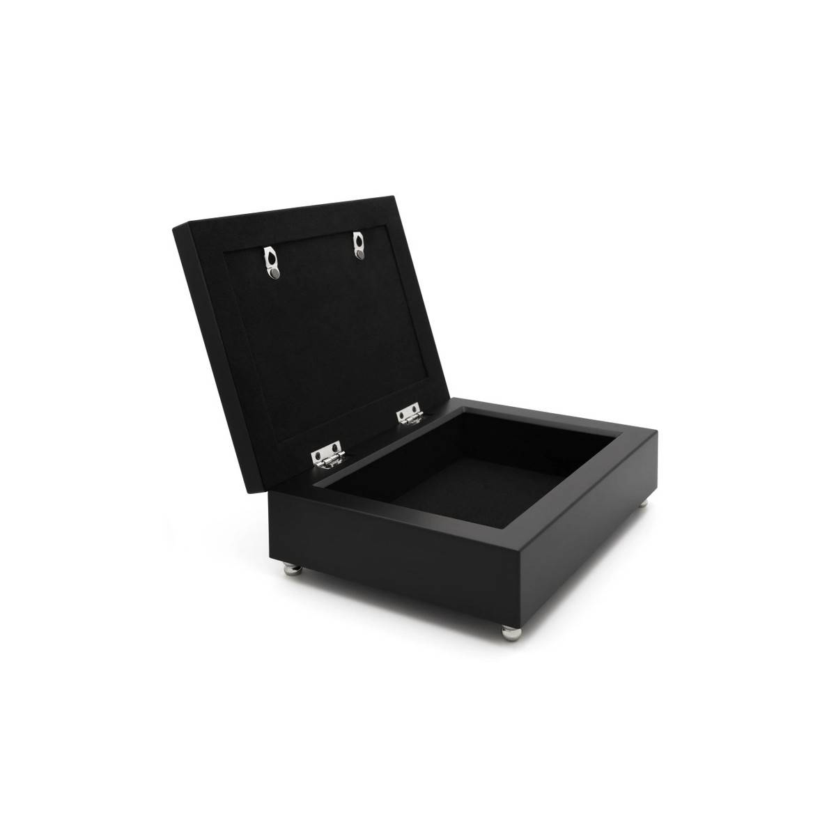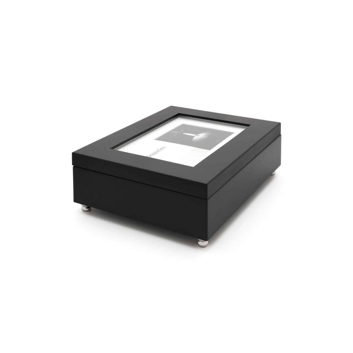 - Elegantní černá schránka určená k bezpečnému uchovávání drahocenných suvenýrů.