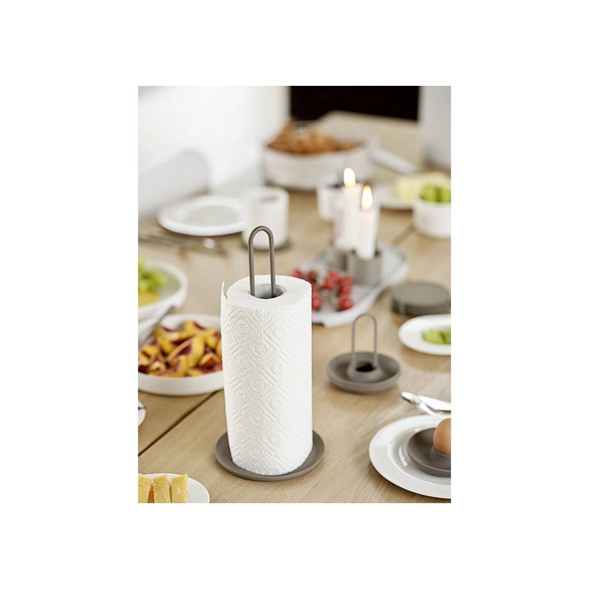 - Minimalistický stojan určený pro stabilní uchycení papírových utěrek v kuchyni.