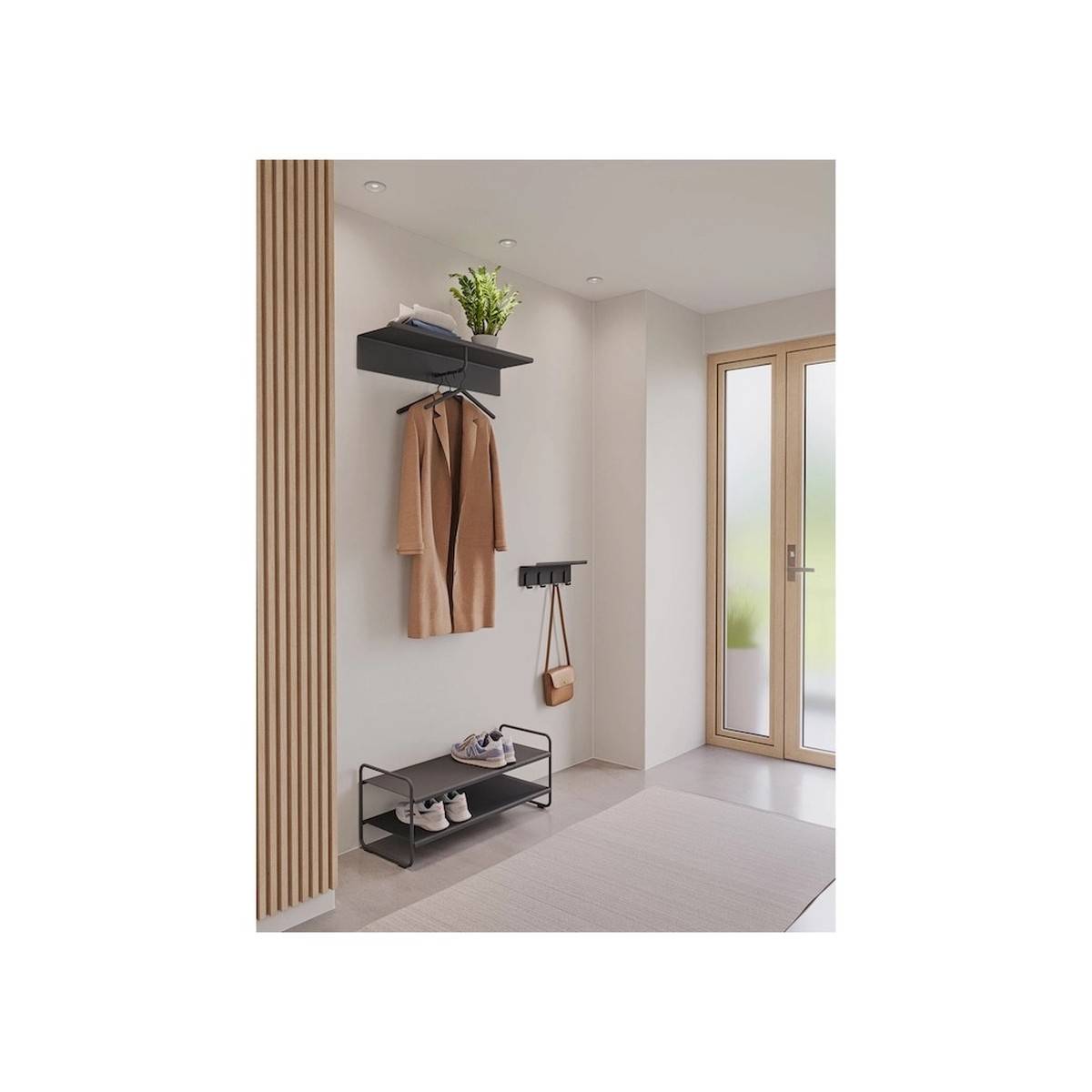 - Praktické řešení pro ukládání obuvi spojené s místem k sezení.
