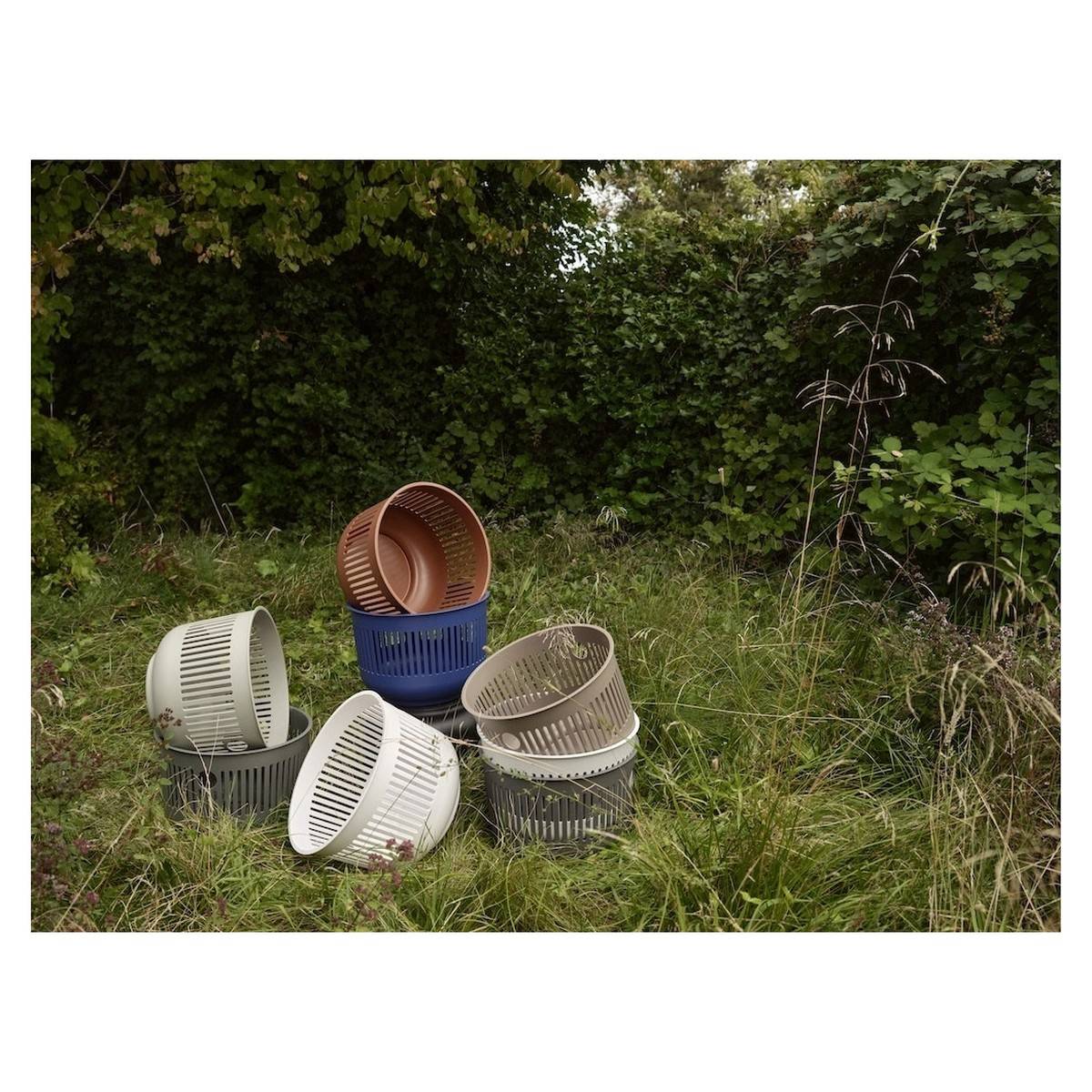 - Designový zásobník určený k diskrétnímu uschování použitého textilu.
