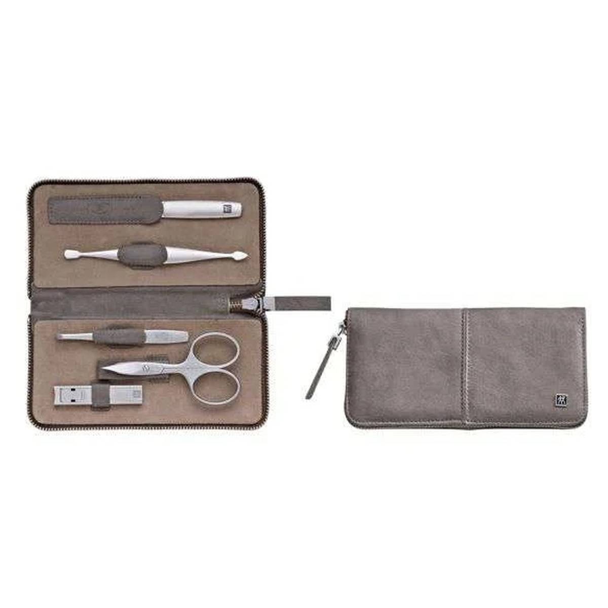 Zwilling Beauty unisex manikúra Twinox Taupe obsahuje manikúrní nerezové nástroje v saténově matném provedení: kombinované nůžky na nehty a kůžičku, kleštičky na nehty, šikmou pinzetu, safírový pilník a oboustranný manikúrní nástroj. To vše v elegantním koženém pouzdře, které se líbí mužům i ženám.